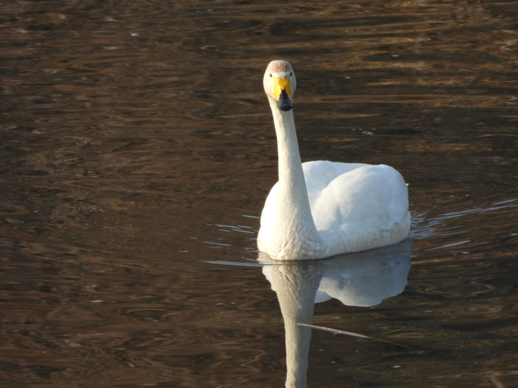 3羽のハクチョウさんが泳いでいるのが見えました。