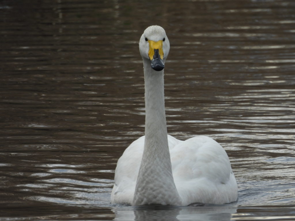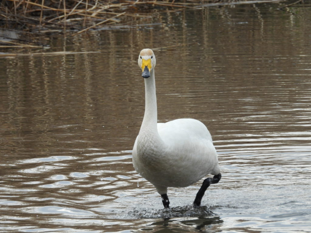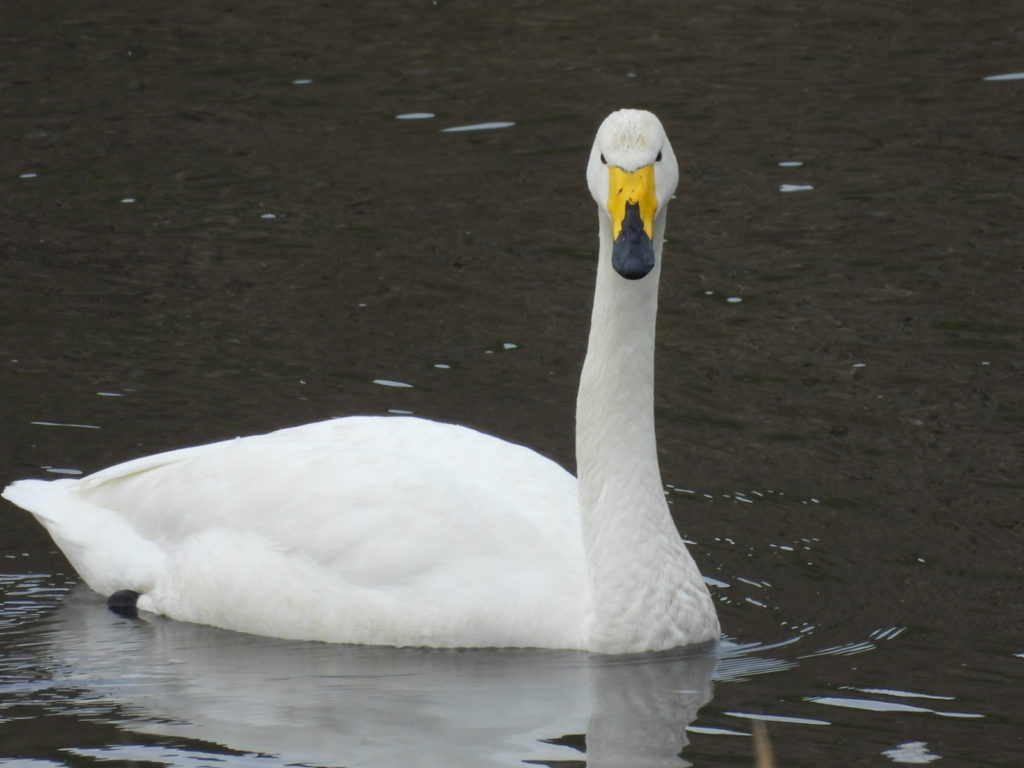 もう1羽の飛来組オオハクチョウさんも川に移動。