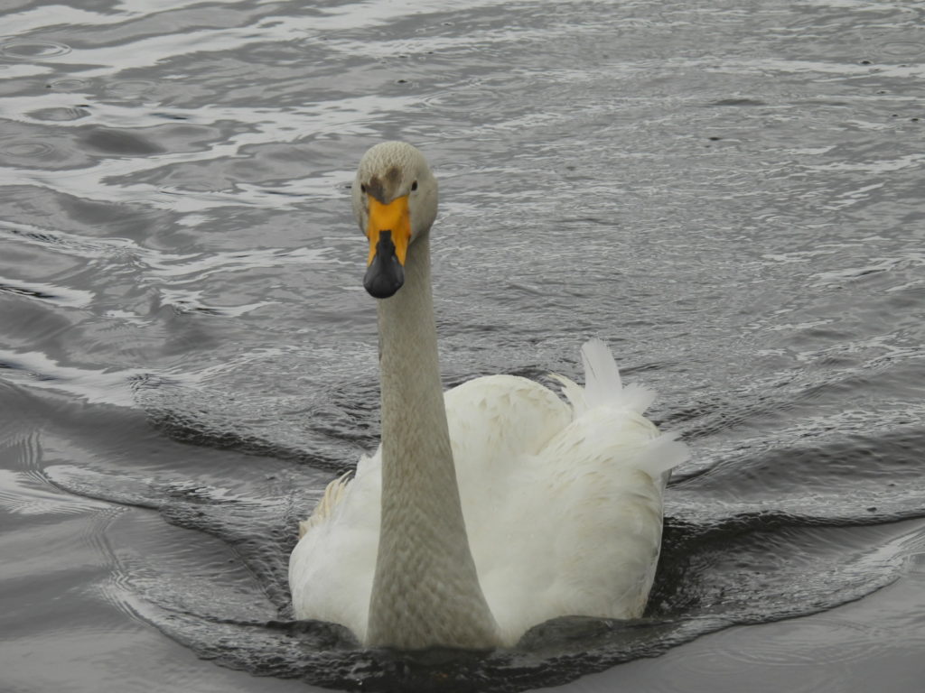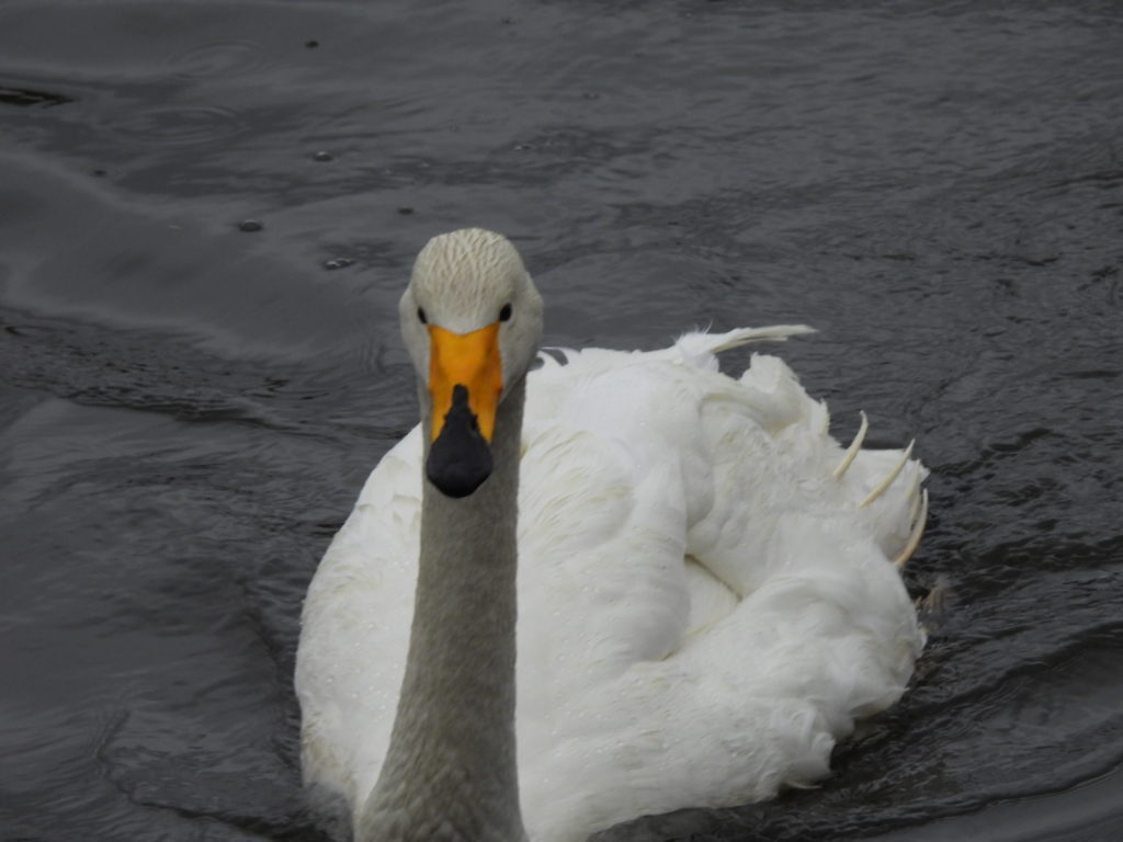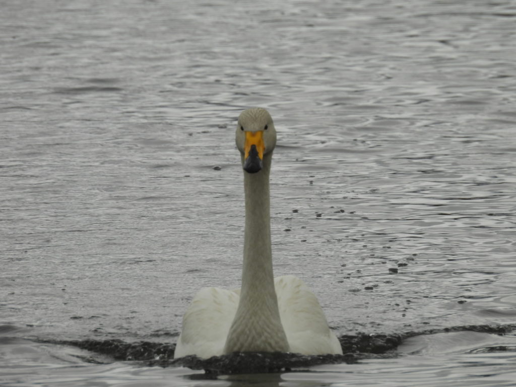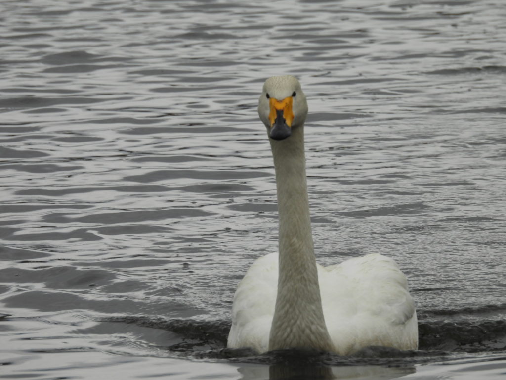 すると、上流からハクチョウさんの鳴き声が聞こえてきました。