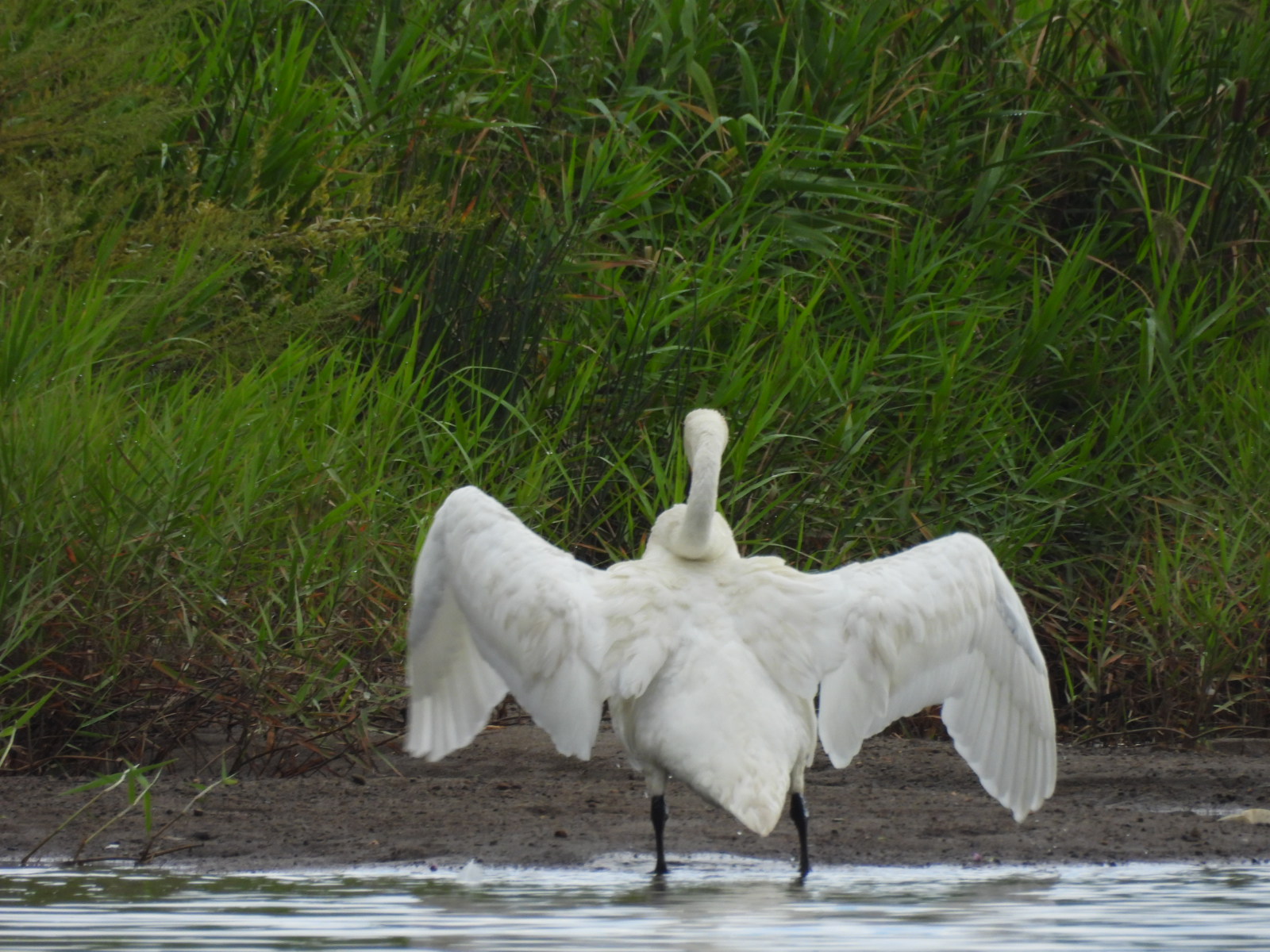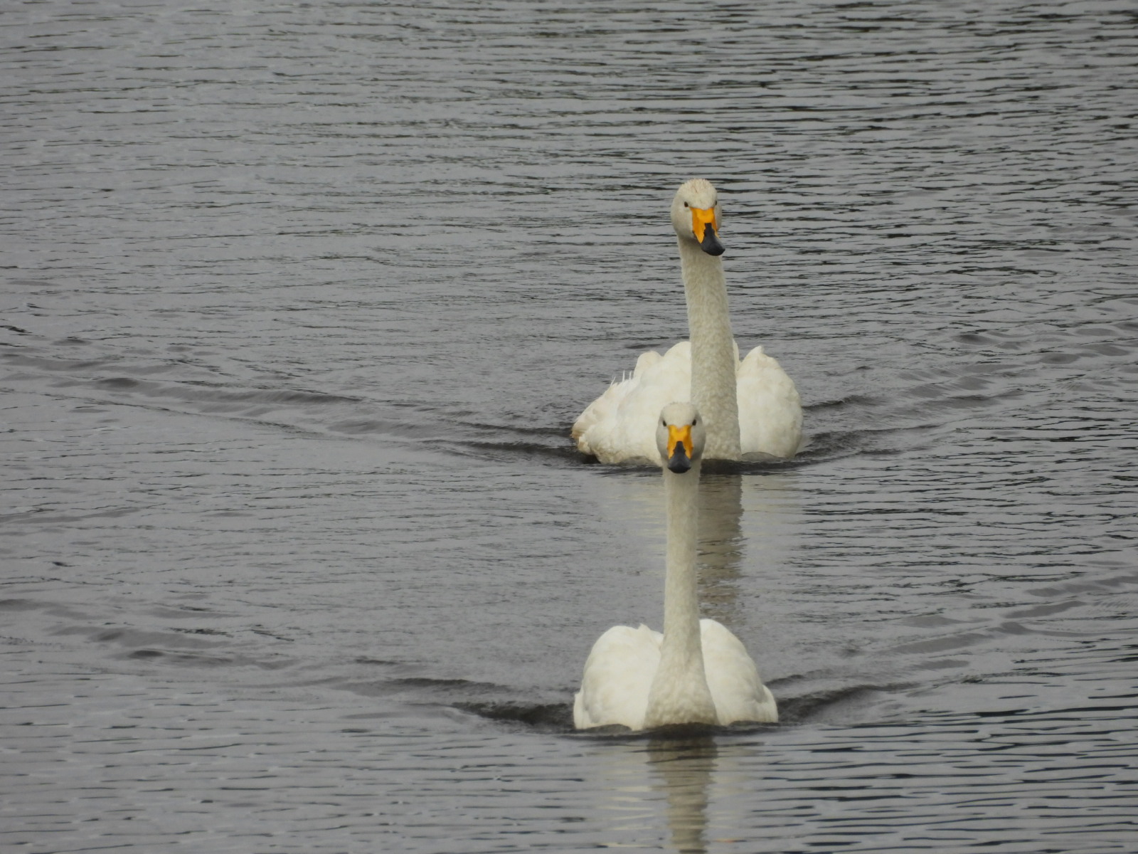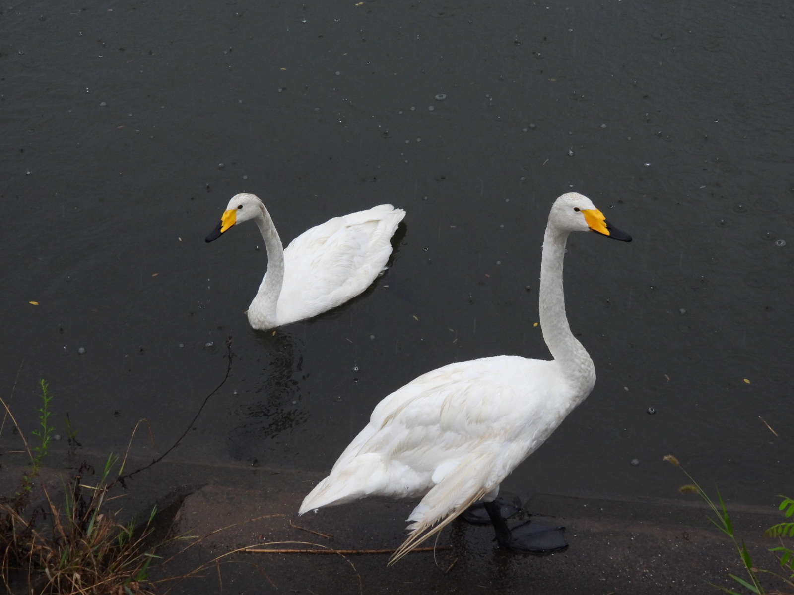 🦢一緒に浅瀬で休んでいた頭が白いメイちゃんと頭が茶色なオーちゃん!